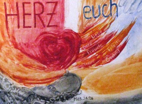 Auch wir brauchen eine tiefgreifende Erneuerung unseres Lebens. Weil sich kein Mensch aus eigener Kraft innerlich erneuern kann, macht Gott uns ein Geschenk: Das kalte Herz aus Stein – schwarz und mit Ketten gebunden – will er austauschen gegen ein lebendig pulsierendes Herz, das empfänglich ist für seine Weisungen.